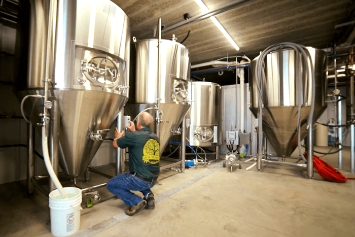 Brewer está registrando temperatura, status da cerveja dentro do tanque de fermentação