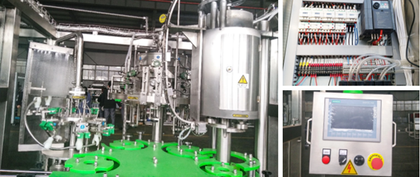 Adota o princípio de enchimento isobárico e a válvula de enchimento adota a válvula mecânica de alta precisão. Possui vantagens de velocidade de enchimento rápida, alta precisão no nível do líquido. Adote o sistema de controle automático MITSUBISHI, realizando a trindade das máquinas, e controle o processo de lavagem, enchimento e nivelamento.