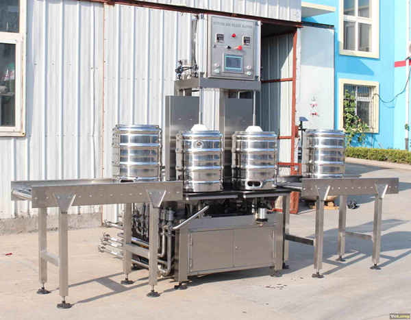Coloque os barris na estação de trabalho - Despeje o refinado - limpe com água limpa e quente - Infate (descarte de água limpa) - Limpe com água alcalina quente - Infle (circule a água quente alcalina) - limpe com água limpa e quente - Infle (descarte água limpa) - Limpar com água limpa e quente - Inflar (descarregar água limpa) - Descarregar vapor e depois esterilizar - Inflar com CO2 (descarregar o oxigênio dentro do tanque) - CO2 - Parar